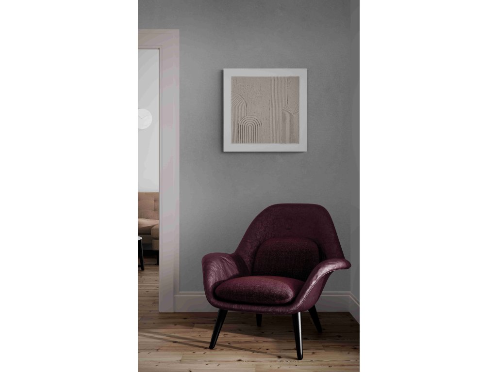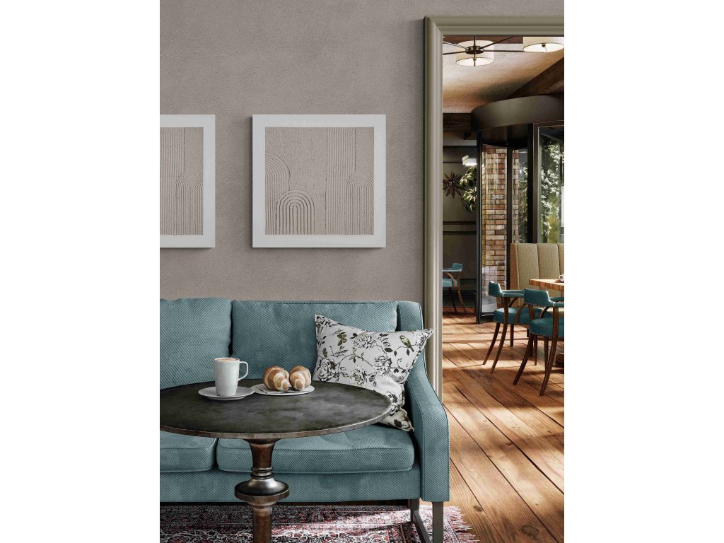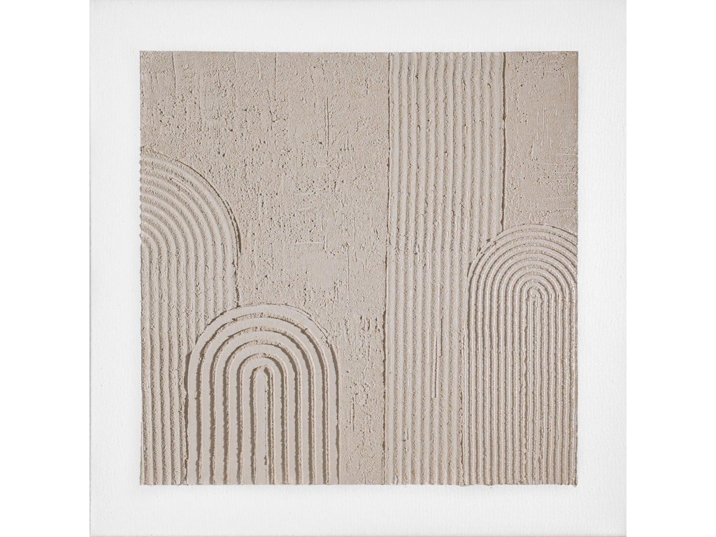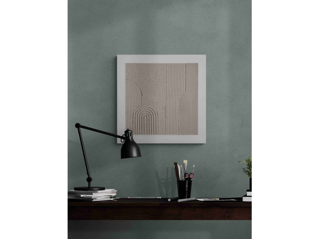 Arco caffè (60x60) je největším z nabízených velikostí této řady. Skutečnou kávou zbarvená kompozice je tvořena výrazným pruhem a několika oblouky na hladkém, mírně strukturovaném pozadí.