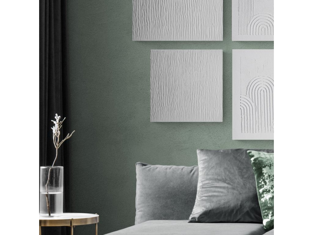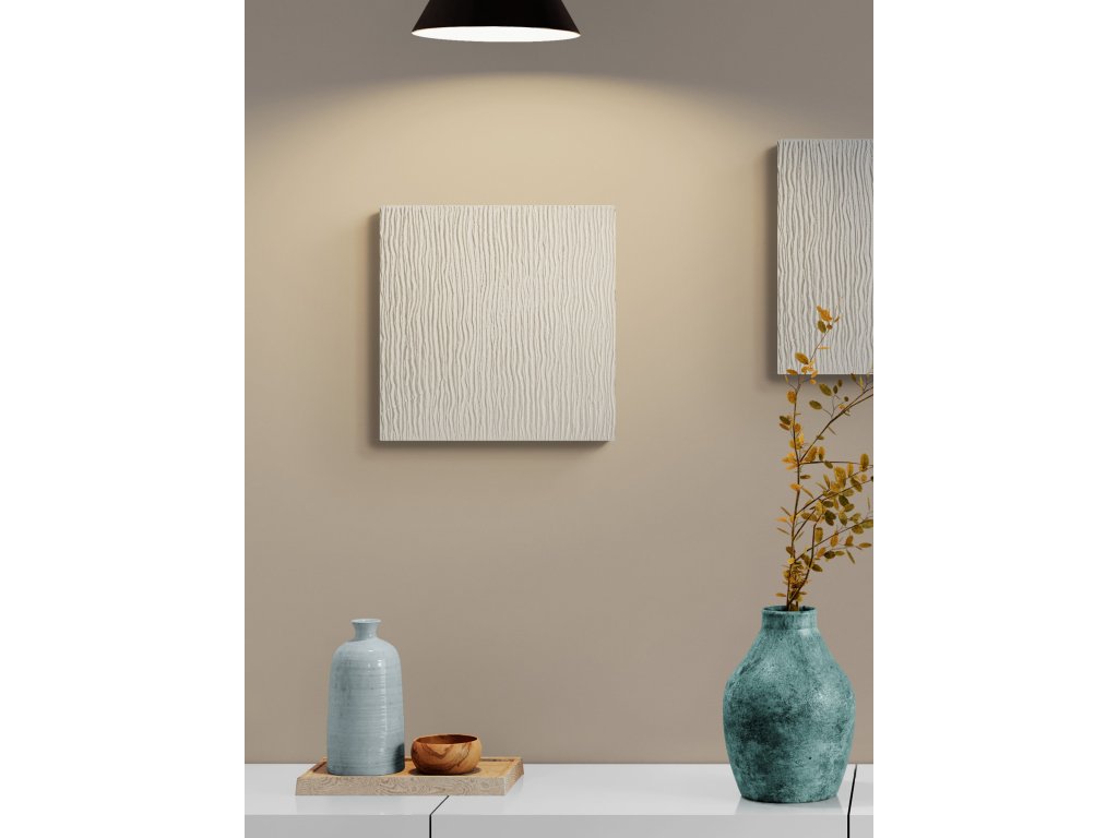 Fluctus bianco (40x40) je nejmenším z nabízených velikostí této řady. Čistě bílá kompozice je inspirována strukturovanými liniemi přírody, které se v ní objevují v horizontálním i vertikálním směru.