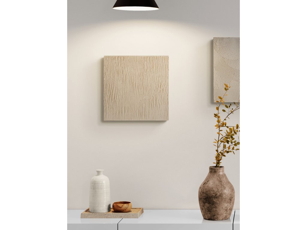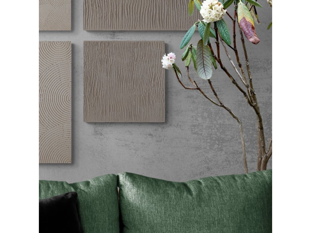 Fluctus caffè (40x40) je nejmenším z nabízených velikostí této řady. Skutečnou kávou zbarvená kompozice je inspirována strukturovanými liniemi přírody, které se v ní objevují v horizontálním i vertikálním směru.