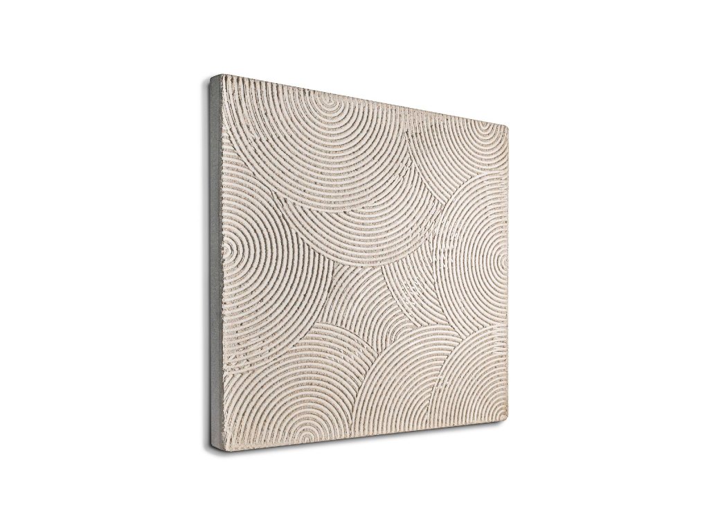 Scala caffè (50x50) je středním z nabízených velikostí této řady. Skutečnou kávou zbarvená kompozice je tvořena důmyslně rozmístěnými vrstvenými oblouky, které působí trojrozměrným dojmem.