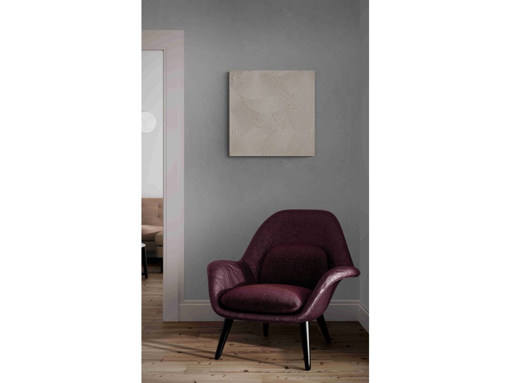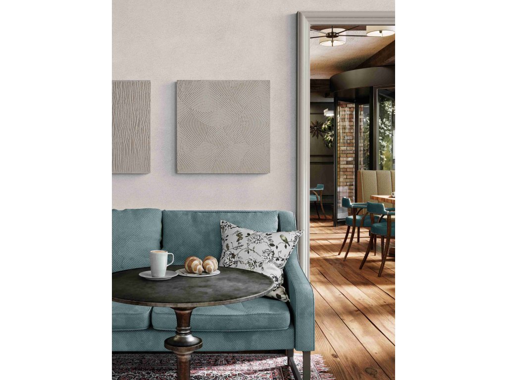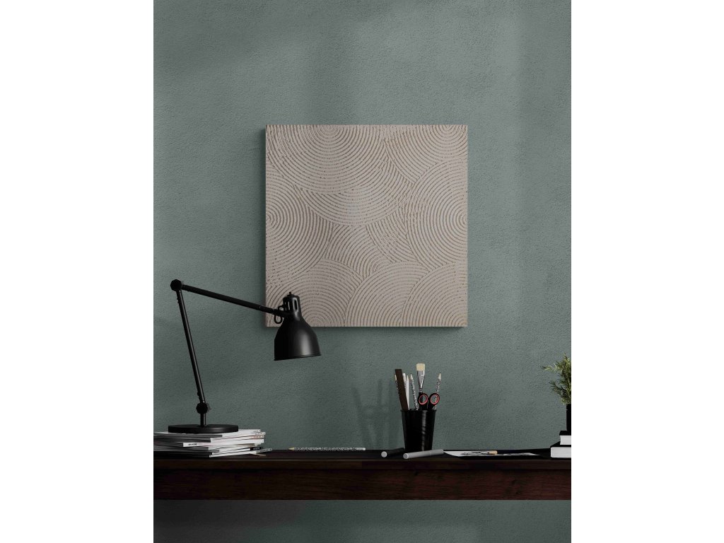 Scala caffè (60x60) je největším z nabízených velikostí této řady. Skutečnou kávou zbarvená kompozice je tvořena důmyslně rozmístěnými vrstvenými oblouky, které působí trojrozměrným dojmem.
