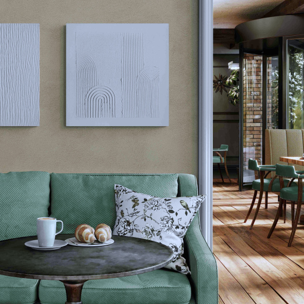 Originální obrazy z dílny Linearti podpoří design interiéru a přispějí k jejímu jedinečnému charakteru. Propojení umění s kávou posílí identitu kavárny a vytvoří prostředí s příjemnou atmosféru vybízející k relaxaci nebo společenskému setkávání.